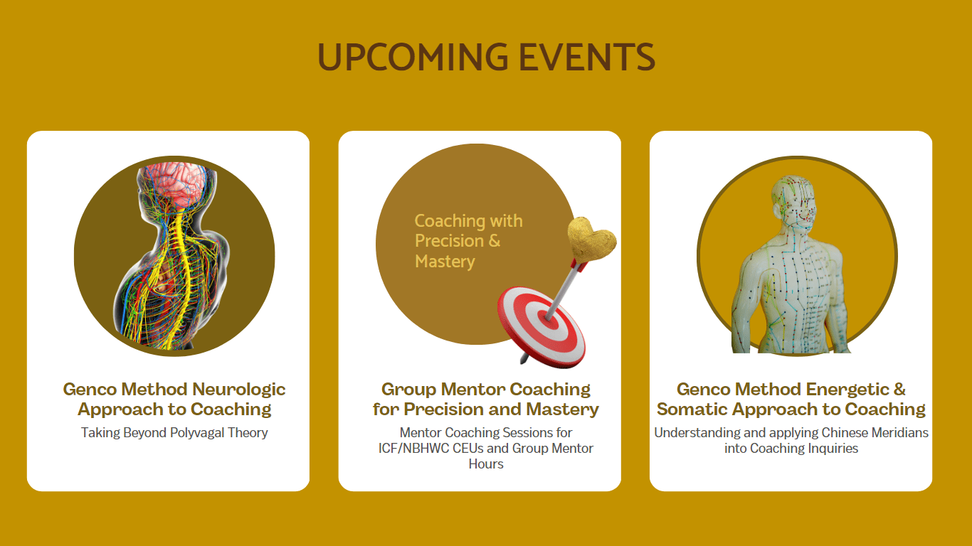 We prepared skillful portfolio items to support the coach’s skill set, mastery, and precision. Join us as you feel the resonance of these developmental offerings. These can be used towards required CEUs for credentialing renewal or upgrade for ICF and NBHWC (with petition).